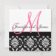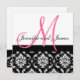 Monogram bröllopsinbjudan med svart och vitt damastmönster. Layout Design av Elke Clarke©2009. Grafik licensierad. Anpassa med ditt monogramnamn och bröllopsfärger. Lägg till all din bröllopsinformation på baksidan av kortet med hjälp av Zazzles lättanvända menyer.