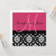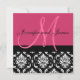 Bröllopsinbjudan Monogram Namn Shock rosa Damask Inbjudningar