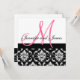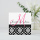 Bröllopsinbjudan Monogram Namn Shock rosa Damask Inbjudningar