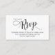 Det här är den moderna vackra elegantens romantiska online-OSA kort, svartvitt kalligrafiskript, för ditt bröllopsinbjudningssvar, eller party firande-inkapslingskort. Du kan ändra teckensnittet färg och inkludera webbplatslänkar och lösenord för bröllopet OSA.