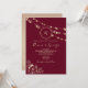 Elegant, modern, rustik, boho marsala burgundy monogrammad bröllopsinbjudan med guld gyldad blommigt snöre och sträng ljus. Se andra produkter från samma samling! Det rekommenderas att säldetiketten från vax, i stället för monogrammet, placeras högst upp för att mer personanpassning ska skapa en starkare effekt av den personliga beröringen av er kärlek-historia, unika egenskaper och individualitet.
