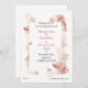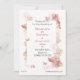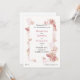 Denna moderna bröllopsinbjudan har blommotiv och fjärilsmotiv i olika nyanser av rosa.