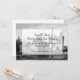 Vacker Bröllopsinbjudan för Sagobrunke Bröllop, med vintagekonst av ett slott gjort i svart och vitt. En ljusare yta, i mitten, har svart text som är redo att anpassas med din bröllopsinformation. Bra sätt att tillkännage ditt kommande bröllop långt i förväg för gäster utanför staden.