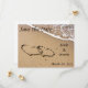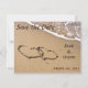 Strandtema Klara att spara datum-kort med hjärtan ritade i sanden! Lättanvänt mall - lägg bara till namnen på bruden och brudgummen, tillsammans med bröllopsdatum i det angivna utrymmet.