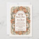Elegant art nouveau blommigt bröllopsinbjudan i persikor, gröntar och burgundi.