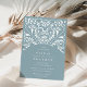 Elegant vintage bröllop bjuder in dammiga blått med ett litet vattendrag eller visar hur man ser ut pappert i en papel picado stil.