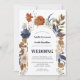 Sommarblommor i ördiga toner med en trendande färg-kombination av blått och rost. Den här vackra bröllopsinbjudan för blommigt med vattenfärg har terracotta och rost med kräm, beige och marinblått. Inbjudan har sammanfogat två traditionella serif typsnitt, som skapar en elegant och ett modernt utseende. Redigera enkelt mallen till information om namn och bröllop. Bröllopsbjudan till nypa rost-vattenfärg Boho-bröllop. Teckensnittet färg är Hex #2B324B.