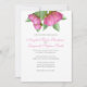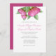 Rosa människor och löv förskönar den här bröllopsinbjudan. Alla aspekter kan redigeras. Klassisk blommigt. Se hela det samordnande delar i Peoniessamlingen.