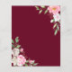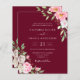 En elegant blommigts inbjudan till ett budgetbröllop med vattenfärgblommor av rosa med modern handskriven kalligrafi på en burgundröd bakgrund.