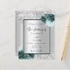 Faux silver tittar bakgrund som dekorerats med grönt blommigtar, blommor och faux silver glitter, gnistor. Anpassa och lägg till information om namn och bröllop. Black brev.