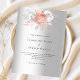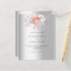 För en elegant och ett modernt bröllop. En faux silver tittar bakgrund. Dekoreras med ro guld och vita blommigtar, rosor och faux silver foliage. Anpassa och lägg till en namn och detaljer. 1 lakan = 1 inbjudan tryckt kant till kant.