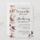 Boho Watercolor Flowers Bröllopsbjudan. Blommor är vattenfärger i brunt, rosa, beige och persikor. Information om bröllop som ska anpassas med din specifika bröllop-information.