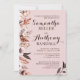 Boho Watercolor Flowers Bröllopsbjudan. Blommor är vattenfärger i brunt, rosa, beige och persikor. Information om bröllop som ska anpassas med din specifika bröllop-information.