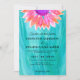 Den här färgstarka bröllopsinbjudan är dekorerad med en vattenfärgad blomma i pulserande nyanser av rosa, lila och orange på en ljus turkobakgrunden. Anpassade enkelt med dig namn och detaljer. Eftersom vi skapar vår egen teckning kommer du inte att hitta just den här bilden från andra designers. Ursprunglig vattenfärg © Michele Davies.