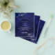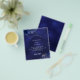 Observera att inbjudan är papper och mycket tunn. Kuvert ingår inte. Om du vill ha mer omfattande inbjudningar (samma design) kan du besöka vår butik. En marin blå bakgrund, dekorerad med blå blommigtar, ro. Den blå färg är ojämn. Anpassa och lägg till namn och information.
