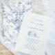 Den här bröllopsinbjudan med chic blå och vit blommigt innehåller en delikat blå illustrerad botanisk mönster med vackra blommor och romantisk bladlöv. Den vackra bröllopsinbjudan är tidlös och romantisk och innefattar klassisk typografi och en vacker kiniserie stil-inspiration.