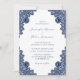 Dessa inbjudningar från elegant bröllop som innehåller blått blommigt snöre är perfekt för att bjuda in dina gäster till er marinblå bröllopsfest.