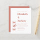 Den här enkla, moderna bröllopsinbjudan innehåller texten om terracotta på vit bakgrund. Lägg till namn och monogram initialer i briden och trimmen i snyggt fet typografi och detaljer i sans serif-teckensnitt. Den omvända sidan är en matchande skugga av solid terracotta. Obs! Kuvert inkluderas inte automatiskt i dessa budgetinbjudningar, så kom ihåg att välja alternativet "vita kuvert"!