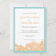 Bröllopsbjudan till seaside Wedding. Mall- och bröllopsinbjudningar med koralltrycksuppgifter i tropiskt färg för ett strandbröllop eller en strandresort bröllop.