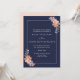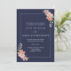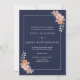 En söt och sofistikerad bröllopsinbjudan med vattenfärgade blommigtar i persikor och blues med ett tunt vitt ram. Den marina bakgrunden gör den här underbaren för ett fall- eller vinterbröllop.