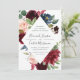 Vår inbjudan till Radiant Bloom-bröllopet omger dina uppgifter om bröllop med ett geometriskt ram av målade vattenfärger i burgundy marsala, rosa och marinblått, med grönt eucalyptus foliage. Ett modernt men biologiskt val i grönt och vitt med lush, färgstarka botaniska ämnen och handskrivna bokstäver.