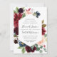 Vår inbjudan till Radiant Bloom-bröllopet omger din bröllopsdag med ett geometriskt ram av målade vattenfärgblommor i burgundy marsala, rosa och marblått, med botaniskt löv av grönt och eukalyptus löv. Ett vackert val i lush, mättad färg för fall- eller vinterbröllop.