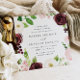 Vår kvadratiska, bröllopsinbjudan i Romantik omger din bröllopsdag med en andedräkt av vattenfärgade blommar i elfenben, burgundi marsala och rosa, accentuerad med lush grönt botaniskt löv och löv.