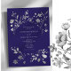 Fira i elegant stil med det här royalets blåa bröllopsinbjudan, försedd med ömtåliga botaniska illustrationer från silver och ett vackert manus. Perfekt för vinter eller formellt bröllop blandar denna utformning ihop moody romantik med tidlös sofistikering och skapar ett djärvt men raffinerat påstående.