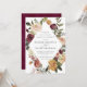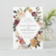 Elegantens bröllopsinbjudningar eller fall- eller vinterbröllop har dina uppgifter inkapslade i en avlång romb omgiven av vattenfärgen ro, morsa och grönt i rustik höst-färg, inklusive persikor, elfenben, , burgundi och grönt.