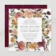 Vår inbjudan till Rustic Bloom-bröllopet i ett unikt kvadratiskt format, ramar, dina uppgifter om bröllop med målat ro och morsa i höstskuggor av burgundi, marsala, rosa och persika, med mörk grönt lövning och löv. Elegantens val av höst- eller vinterbröllop.
