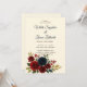 En inbjudan från elegant bröllop som innehåller vattenfärgburgundi och marint ro med muterad grönt och guld blad på en varm beige bakgrund. Perfekt för rustiskt, höst eller romantiskt bröllop. Fullständigt anpassade med dina bröllop-uppgifter.