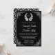 Akta dina gäster med stil bröllopsinbjudan i vintage med en elegant vit ornat gräns och en vacker lagre mot en svart bakgrund. Lägg bara till din händelseinformation i den här mallen som är enkel att använda för att göra den till en inbjudan av typen en. Vänd kortet över för att visa en vacker mönster på baksidan av kortet. Den här inbjudan är helt anpassade. Alla texter är redigerbara och färg i bakgrunden kan enkelt ändras till det som passar dig bäst.