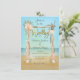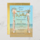 Söt och Modern tropisk strandbröllopsinbjudning med vattenfärg. Söt färska blommor i färg av rosa, persika, korall, vita med grönt eucalyptus. Ord "bröllop" och baksidan är faux guld foil. Arken är drivträ. Perfekt för en hawaiisk eller tropisk miljö för en ceremoni eller bohemisk destination i bröllop.