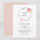 Den här vackra andningsinbjudan till andningsbröllop i blommigt i vår har en vattenfärgandekrans i rosa överst med briden och brudgummen i namn. Alla viktiga uppgifter om bröllop är skrivna i svart. Du kan anpassa inbjudan genom att klicka på "Anpassa den här mallen". Den här bröllopsinbjudan koordinerar med de andra produkterna i Vår Watercolor Bouquet Bröllop Collection.