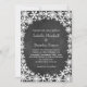 Ljusa snöflingor på en illustrerad krita-bakgrund dekorerar denna inbjudan till vintern-bröllopet. Om det behövs fler objekt i den här samlingen kan du kontakta oss på prettyfancyinvites@gmail.com med din begäran.