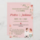 Bröllopsinbjudan med den rosa vår ram De här bröllopsinbjudningarna i blommigten elegant innehåller speciella uppgifter om din vår av bröllopsfest blommor och rosa grönt löv. Anpassa dina rosa bröllopsinbjudningar genom att lägga till namn och bröllop. Inbjudan från vår bröllop speglades på rosa. Perfekt för vår och sommar-bröllop, trädgårdsbröllop osv.