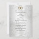 Bröllopsinbjudan om vit satin-utseende med präglade tittar blommor och gyllene hjärtan i monokromatisk elegant för formell ceremoni i giftermål och mottagningsinbjudan. Mallen kan användas för alla särskilda tillfällen. Ändra bara texten till kostym efter behov.