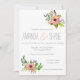 Whimsical blommigt handmålade bröllopsinbjudning, eller inbjudningskort för möhippan. Persikofärgat område. Hipster, land, shabby chic.