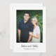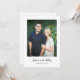 En vackert designad bröllopsinbjudan med ett stort foto på framsidan med en elegant vit indrag gräns. Insidan har ett traditionellt typsnitt som accentueras och ramas in med grönt löv gräns.