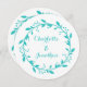 Bröllopsinbjudningskort i rustiska blommigtens mönster av krans i söt i turkoshönan blått. Anpassa dessa inbjudningar med din bröllop-information. Finns i matchande produkter för alla dina bröllop behov.