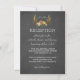 Enkel och elegant! En rustic boho-dekor design med förgyllda horn utsmyckade med strängljus, blommor (rosor) på en krit tavla bakgrund. Använd verktyget Anpassa för att lägga till din info. För mer bröllopspapper, besök Rustic Embellished Antlers All Seasons Events kollektion.