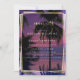 strandbröllopsinbjudannattlig strandbröllopö destinationbröllopgeometrisk rampalmerträdkvällssolnedgångljusa färger lila magenta rosaexotisk strandbröllopguld kalligrafitropisk solnedgång bröllop