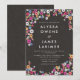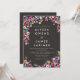 Tysta, färgstarka inbjudningar till blommigt-chalkboard-bröllop!!! Anpassa inbjudningskorten med din online för information. Enkel, modern text med färgstarka, handmålade jokerblommor i rosa, blått, gult och vitt, mot en texturerad svart bakgrund i krita.