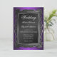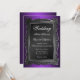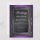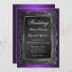 Bröllopsinbjudningar med ett gotiskt tema som innehåller en utskrift av ett ornerat metalliskt stil ram på framsidan, med en lila till svart övertoning, och detaljer om bröllop över svart. Underbar för Halloween bröllop eller temat bröllop. Matchande svarskort för OSA, Spara datum meddelande och tackkort (artiklarna köps separat):