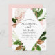 Budgeten Ro Guld och Botanical Grey Foliage och Rosa Faux Foil Metallic Flowers Watercolor med Faux Ro Gold Foil Geometric form Vår eller Sommarbröllop - innehåller vacker och elegant manustypografi med moderna tropiska botaniska blommor och grönenergi för den speciella Bröllopsdagen firande.