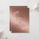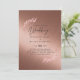 Med den här vackra, moderna, metalliska bröllopsinbjudan i ro med modern typografi och textmall från fält på båda sidor kan du lägga till alla nödvändiga uppgifter, inklusive mottagning, osa, presentregister, riktning och mycket mer. För matchande objekt och anpassningsbar redigerar kontaktdesignern LeahG.