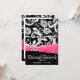 Bröllopsinbjudningar för Shock rosa White & Black Damask - har en svart och vit blommigt, en fuktig bakgrund med ett tryckt band av shock rosa, även med en tryckt rhinestone-förnimning. Dessa bröllopsinbjudningar är inställda på ett baskort av hög kvalitet lagrar. Du kan dock ändra uppgraderingen till fanciertyper till ovanstående höger. Varje inbjudan levereras med ett vitt kuvert från passande.