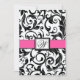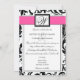 Svart och Shock rosa Damaskopasinbjudningar - matcha OSA kort och mer hittar du nedan på den här sidan. Varje inbjudan innehåller en blommigt löv-dämpare som skrivs ut svart över en vit bakgrund. På framsidan och baksidan finns också ett shock rosa som trimmas i svart med ett fyrkantigt monogram som du kan anpassa till rummets förnamn. Dessa bröllopsinbjudningar är inställda på baskort av hög kvalitet lagrar. Du kan dock ändra lagrar till linne, filt (präglat), återvunnet och flera metallskuggor om du vill ha under nummer 2 (välj stil, storlekare och papprare typ) under orangen Lägg till i kundvagn. En lista över merkostnaderna för ett fancierkort lagrar visas också under det alternativet. Varje inbjudan levereras med ett vitt kuvert från passande.