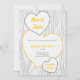 Den här roliga inbjudan innehåller en uppsättning med tre hjärtan över en design av grått-träkorn. Träkornigt mönster på baksidan kan lämnas som det är eller tas bort under anpassningen. Du kan anpassa alla typsnitt och teckensnittsplaceringar samt färgerna för teckensnitt. Matchande OSA kort och andra objekt är också tillgängliga.