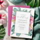 De här bröllopsinbjudningarna har tropiska blommor och handflatan lämnar i klara skuggor av rosa, orange och grönt. Använda mallens fält om du vill lägga till information om anpassningsbarna. Beställ utskrivna kort eller utskrivbart destinationsbröllop inbjudan. En elegant som kan välja strandbröllop på tropiskt ställe. Om du vill se fler design som den här kan du besöka www.zazzle.com/dotellabelle Unik vattenfärgsgrafik och design från Victoria Grigaliunas från Do Berätta A Belle.